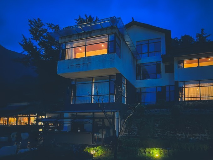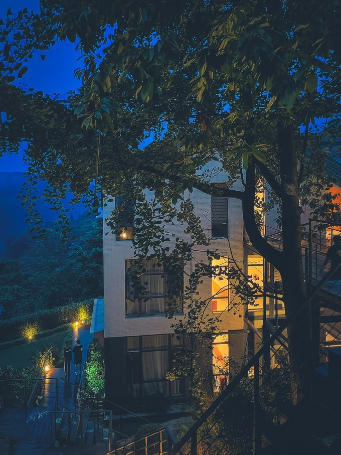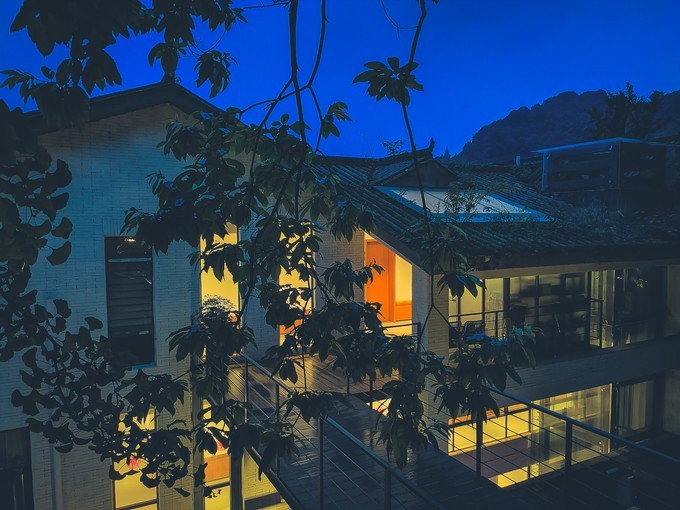 整体来说民宿共有四栋楼,三栋独立的,阳台景观要比较好一些,正对着前面的山景,自然晚上也会更加安静,还可以听着虫鸣泡着私汤温泉,真的想想就惬意十分。