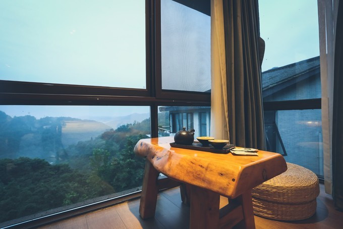 酒店提供免费的饮用水和青城山绿茶,毕竟是来度假的,没有那么多必须去打卡的景点,所以宅在房间里,过一个安静的下午,自然是我想要的慢时光。