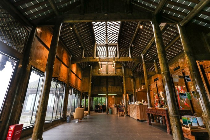 入住酒店三层的大堂(1层为免费停车场适合自驾一族、二层为餐厅)全部是木质元素的装饰,一眼看上去就有种远离了城市喧嚣归隐田园的亲切感,仿佛回到小时候在农村老家的房舍,只不过这里的设置可是要比二十多年前高级多了。