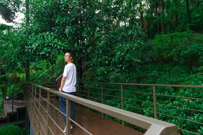 沿着木质结构的小路楼梯,拾阶而上,空气中弥漫着青草的芳香和雨后的新鲜感,轻轻的道一句“别了我讨厌的朝九晚五,你好青城山”。