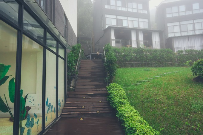 相识前台小姐姐帮我们做好入住登记后,带我们“爬山”(其实也有电梯,但是一共就三四层楼,我们也没行李,走在云雾缭绕的小路上更有感觉不是嘛)我们选择了稍微高一点的景观私汤房,所谓站得高看得远。