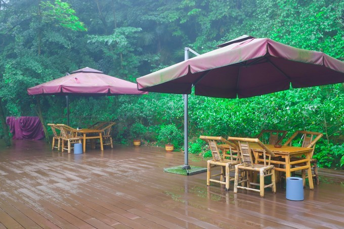 民宿大堂的后门还有一处亭台,背后就是植被茂密的大山,因为刚好是雨后,看起来也格外有意境。如果是夏天,我想一定是个避暑的绝佳选择。