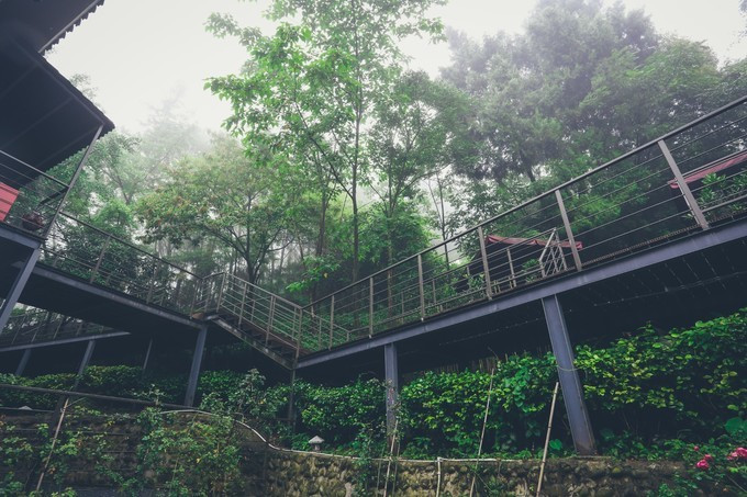 位于山腰的三栋民宿,四周环绕着木栈道,两旁都是原生郁郁葱葱的树木,不仅环境幽静而且也非常适合拍照。