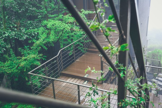 每栋楼之间都有着一定的间距,不仅保证了私密性,而且相对隔音效果也会更好,海拔1000多米的青城山之上空气格外清新,尤其是雨后,大口呼吸着,好不快哉。