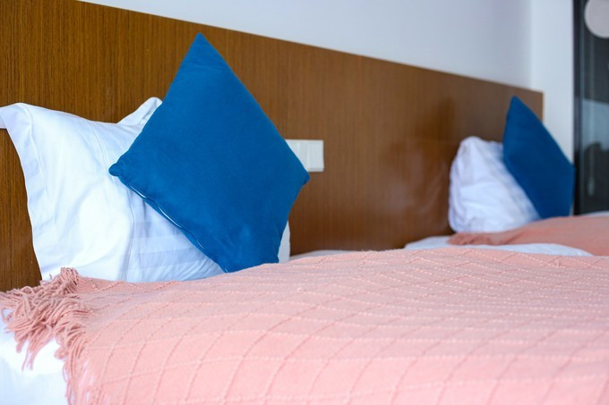 我们预定的双床房为榻榻米设计,整体原木色的装饰看起来非常清新,40多平的客房配有超大落地窗,自然白天的采光是没的说的,其实晚上还会有惊喜。