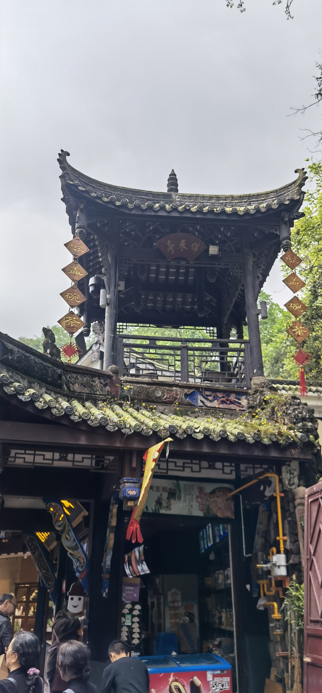 入口处门楼,上书青城山,内堂有字:青城山幽子规啼。门柱上有内外两联:
