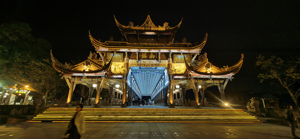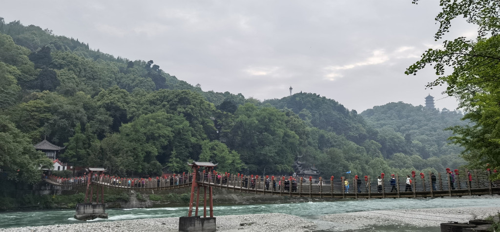 傍晚时分,入住都江堰一家酒店,稍事休整,便结伴来到南桥上。