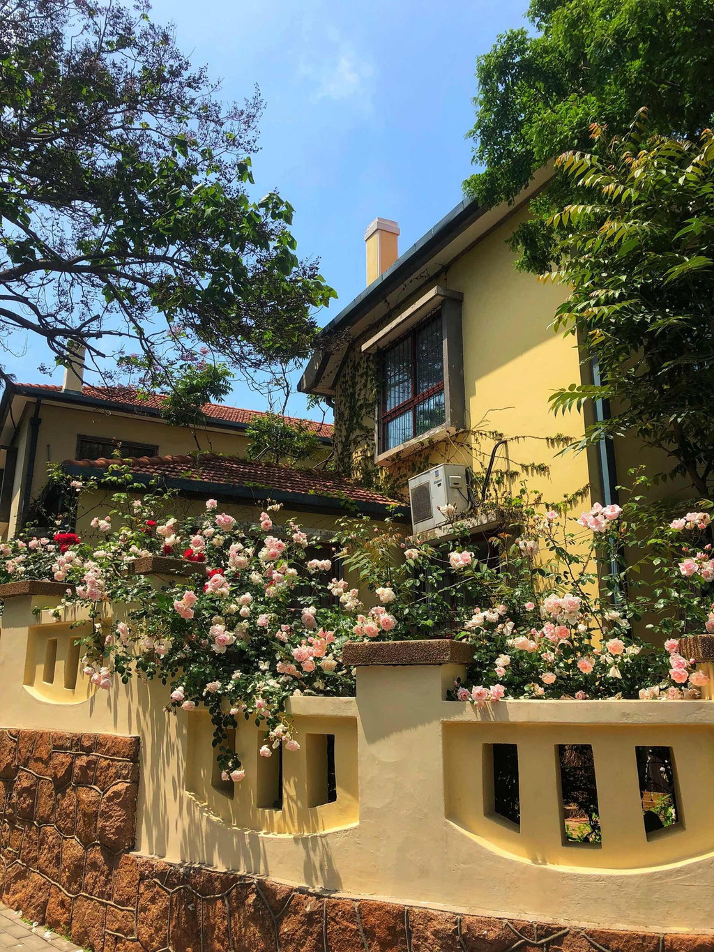 当然,七八月的湛山三路同样美丽。此季正是蔷薇挂满枝的时节,悠悠地从民居院子里伸展出来,没有浓烈的香,却给人一种无法抗拒的喜欢。八大关“花街”的美名真不是盖的。