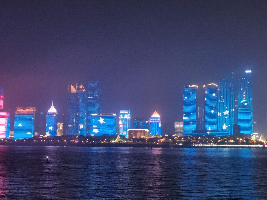 【评】从淄博到青岛特意选了一条经过胶州湾大桥的路,跨海大桥真是壮观,可惜桥上不能停车,真想拍两张照片留念。啤酒博物馆对于孩子来说没有什么感觉,毕竟还没有到喝啤酒的年纪。在栈桥景区坐了快艇,分为50、100、150的三种票,买了100的票,感觉快艇开出去不远,但已经能看到八大关了。晚上在奥帆中心欣赏的灯光秀,光怪陆离的灯光、不同主题的变幻,在大海的和天空的衬托下,如梦如幻、如歌如诗,美轮美奂。感觉坐在酒吧的凉棚下,吹着海风、喝着青啤、吃着海鲜、听着伴唱,赏着灯光,真是人生美事啊!摸了摸儿子的头,唉,算了,还是去吃披萨吧,过10年再陪老爸喝酒。