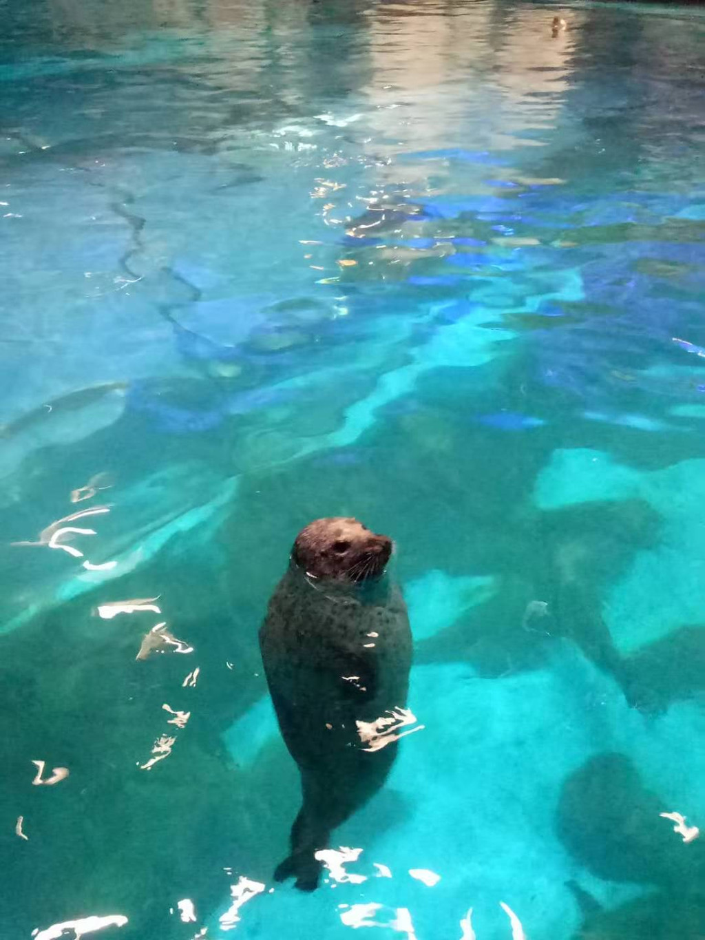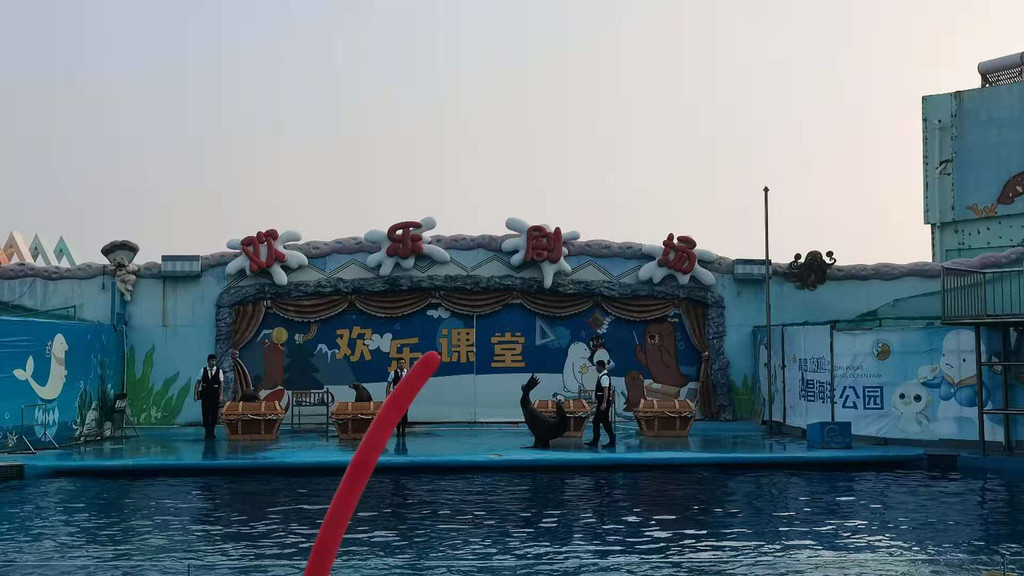 极地海洋世界游玩经历:馆内人山人海,热闹非凡,我们随着簇拥的人群,来到了动物表演馆,一只只海狮,浑身黝黑发亮,随着它大摇大摆地滑翔着闪亮登场,观众席上响起一阵阵热烈的掌声。顶球、单手转圈、套圈、算术它样样都会,真不愧是全能。最有趣的是它的套圈和算术表演了。面对观众故意“使坏”仍偏的圆圈,海狮有时也表现得很无奈,但它却会立刻用嘴衔起来一抛,圆圈就稳稳当当地套在了它的脖子上,然后对着观众摇摆着身子,好像在说“我可没有输哦!”逗得观众一阵大笑。轮到算术表演了,观众们给出了一个又一个的加法和减法算术题目,它竖起耳朵听着,然后毫不含糊地用嘴叼出了写有正确答案的牌子,真厉害啊!