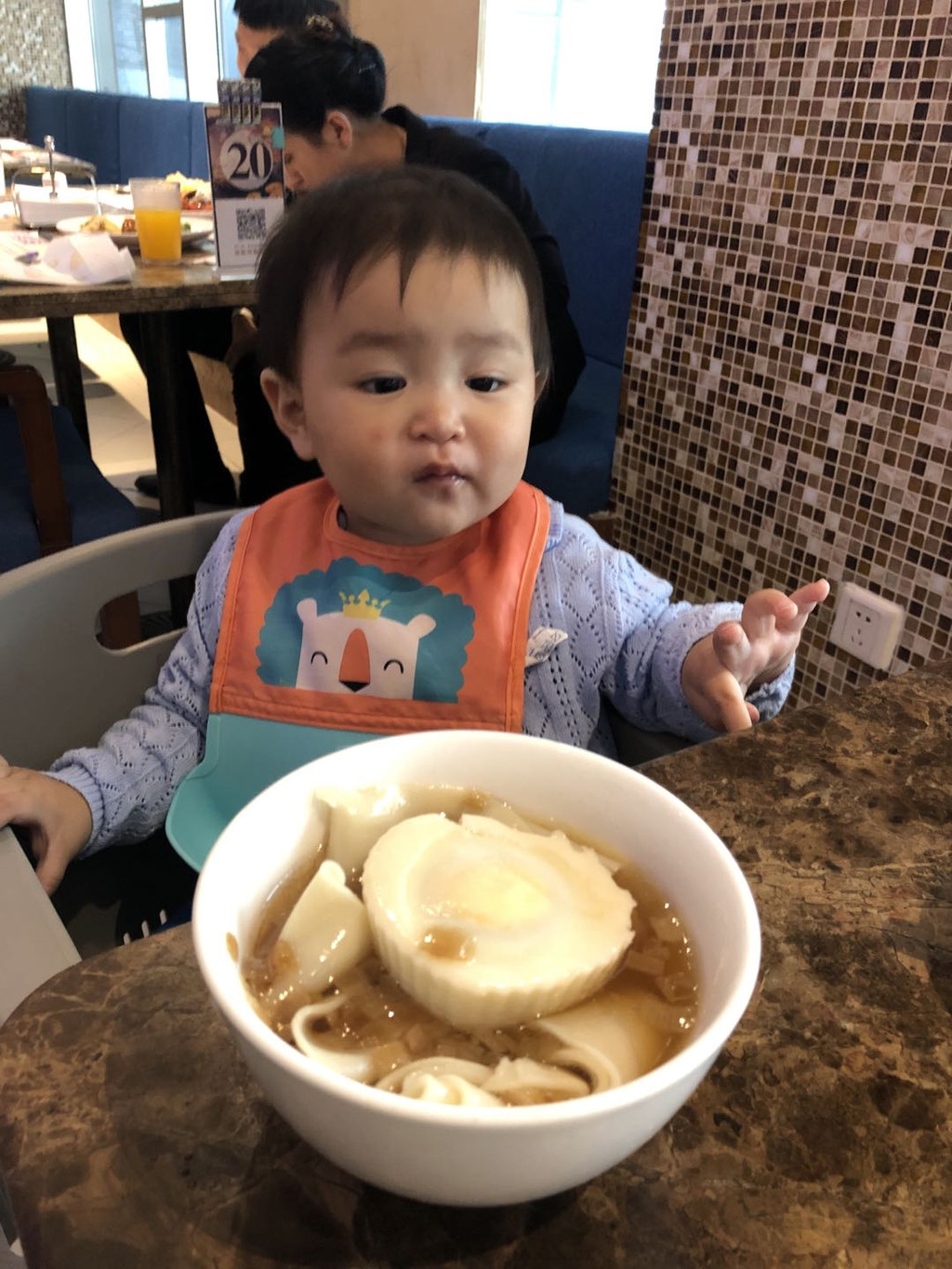 玩了两个多小时一家人都饿了,考虑疫情的原因没敢到周边的小店去品尝当地美食,下次再来的时候一定体验一下,再三研究决定回酒店吃自助餐,自助餐在酒店的三楼,种类比较丰富,看着卫生也还不错,人不是特别多,给小朋友选了点稀饭、刀削面、一块鱼肉、两种水果先把她喂饱了跟着爸爸玩,我就开始我的大餐啦,三文鱼、小火锅、烤肉我都很喜欢,来杯橙汁来点点心饱饱的一餐结束啦