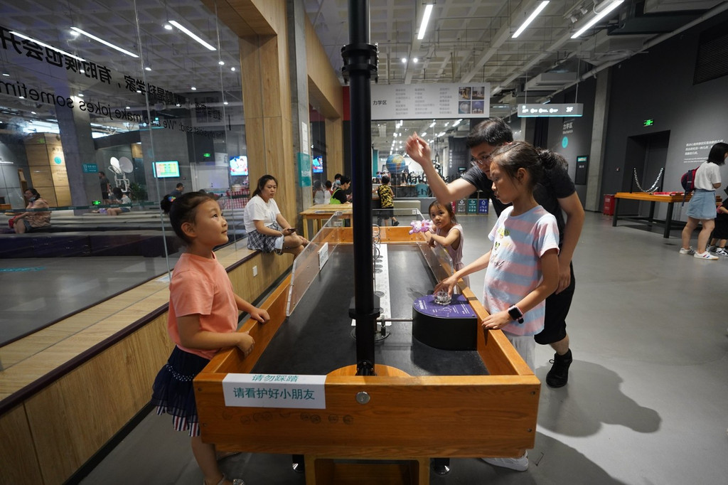 这层楼适合10岁以上的孩子,通过声学、数学、力学、光学和电磁学五大常设主题展区,让孩子发现科学的美好。