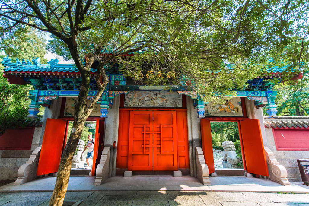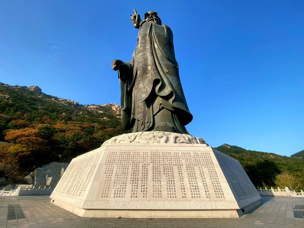 尽管并无宗教信仰,但太清宫仍是我来崂山前最向往之处。当年蒲松龄曾在这里驻足,《崂山道士》便发源于此,让我对这个有着2000多年的宫殿好奇不已。来到太清宫,只觉得建筑都纤巧秀丽,其庙宇分为三宫殿、三清殿、三皇殿三个部分,其中还坐落着全国最大露天老子像,屹立在山峦之间,自带威严。