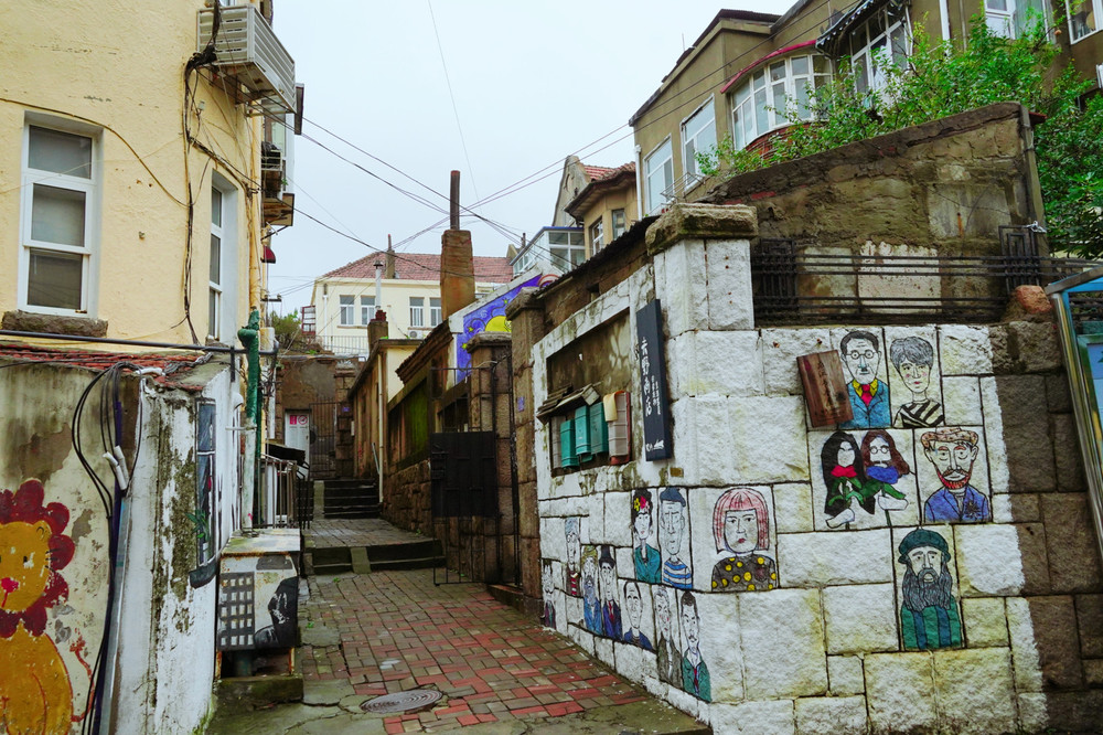 这边的道路比较狭窄,多数都是单行道,上下坡比较多,起伏交错中,每个看似杂乱的画面感觉都很文艺。从大学路步行十分钟便可到达龙江路,这里被称作“龙猫街”,是因为路边随处可见的涂鸦作品,仿佛穿越到宫崎骏的漫画里。很多文艺小店掩藏在近现代建筑群里,虽显破旧,却不失风范。