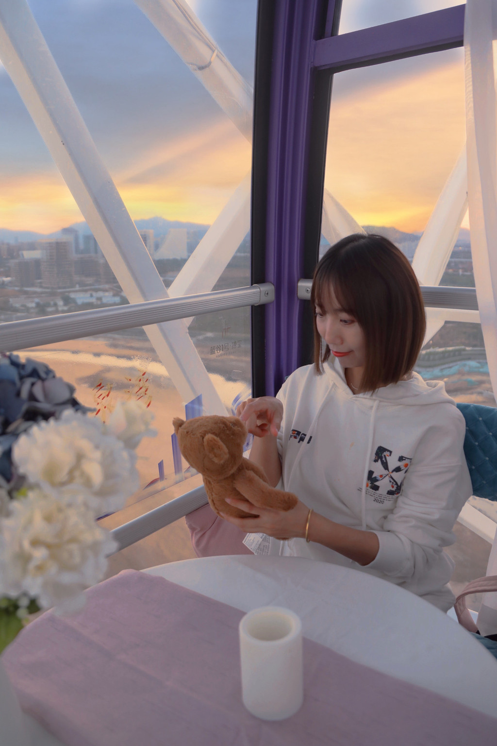 传说一起坐摩天轮的恋人在摩天轮达到最高点时亲吻,就会永远在一起。而夕阳时分,天际被渲染成红色,海边金光闪烁,更是浪漫到令人一时失语。