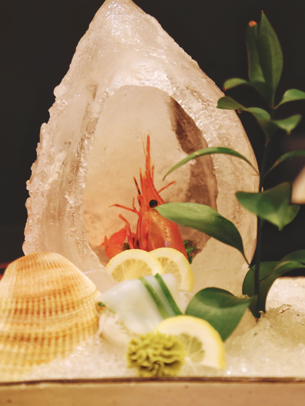 放在冰山中的牡丹虾全场最吸睛,北极虾甜美弹牙,意犹未尽