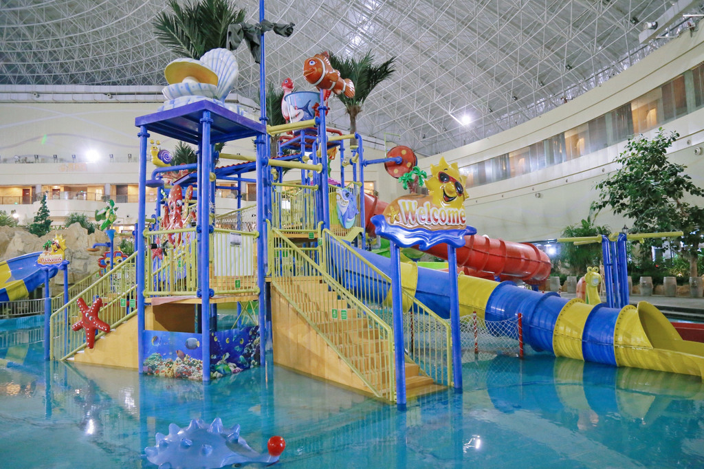 除了经典的养生温泉池外,还有儿童娱乐区,儿童水寨、冲天回旋、彩虹滑梯等设施可以让小朋友玩翻天,非常适合全家出行。