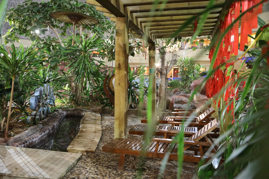 酒店里的温泉是海洋温泉,世界四大溴盐温泉之一。对人身体特别好。海洋温泉很少,只有在意大利西西里岛、日本九州、中国台湾和中国青岛才有。是非常稀少的温泉资源。有室内和室外两种,全场有60多个温泉池,有不同水温,不同功效,高温药浴,有个池子里还有麻将桌,还有儿童乐园区,适合各个年龄阶段,比较适合家庭出游。