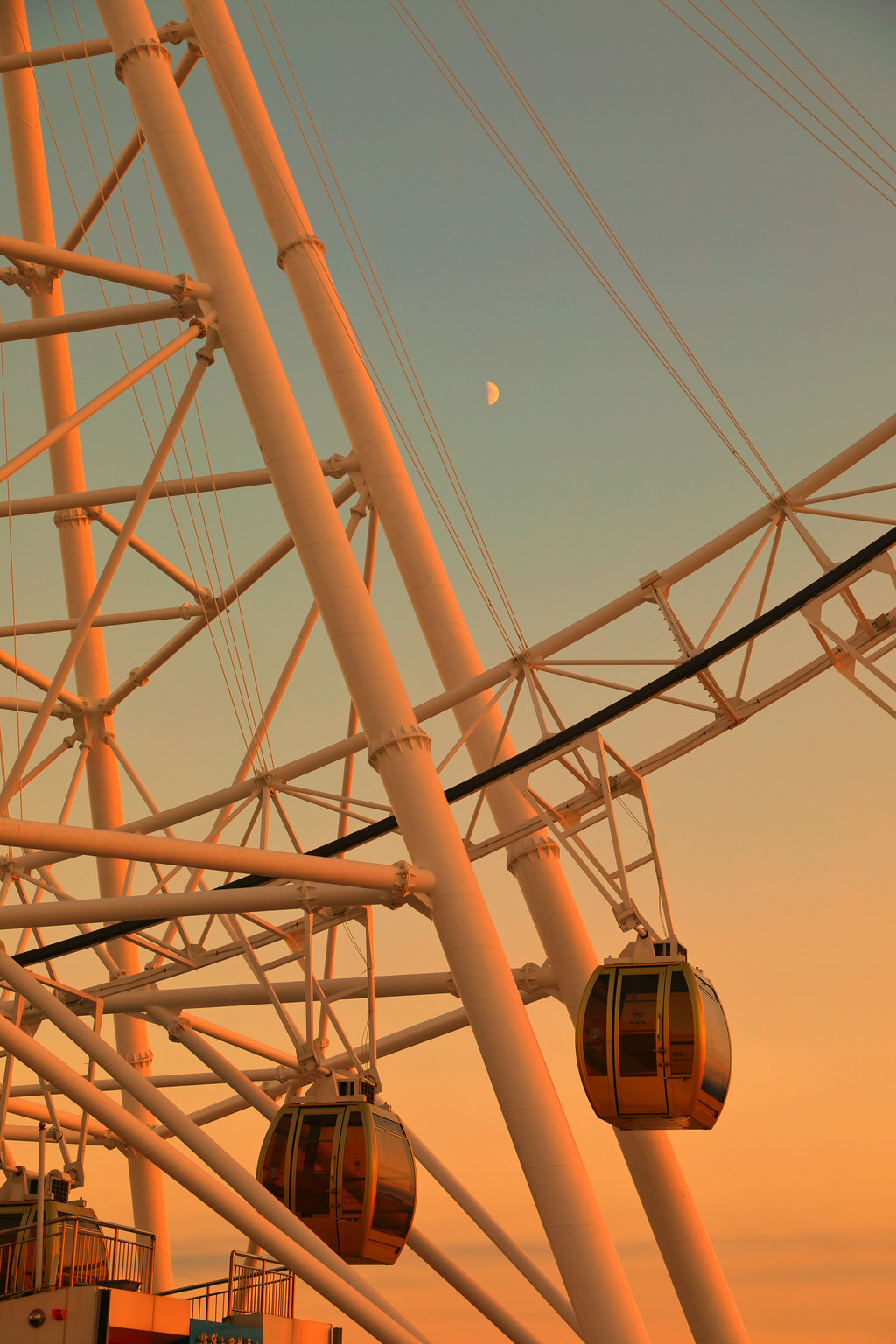 在落日时分更是浪漫,除了摩天轮还有淡紫色的旋转木马。这里好像迪士尼,又好像某一个宁静的欧洲小镇。海洋之星摩天轮已经成为了青岛的必打卡地了。传说摩天轮的每一个盒子里都装满了幸福,海洋之星有54个浪漫盒子,快来寻找属于你的幸福吧。