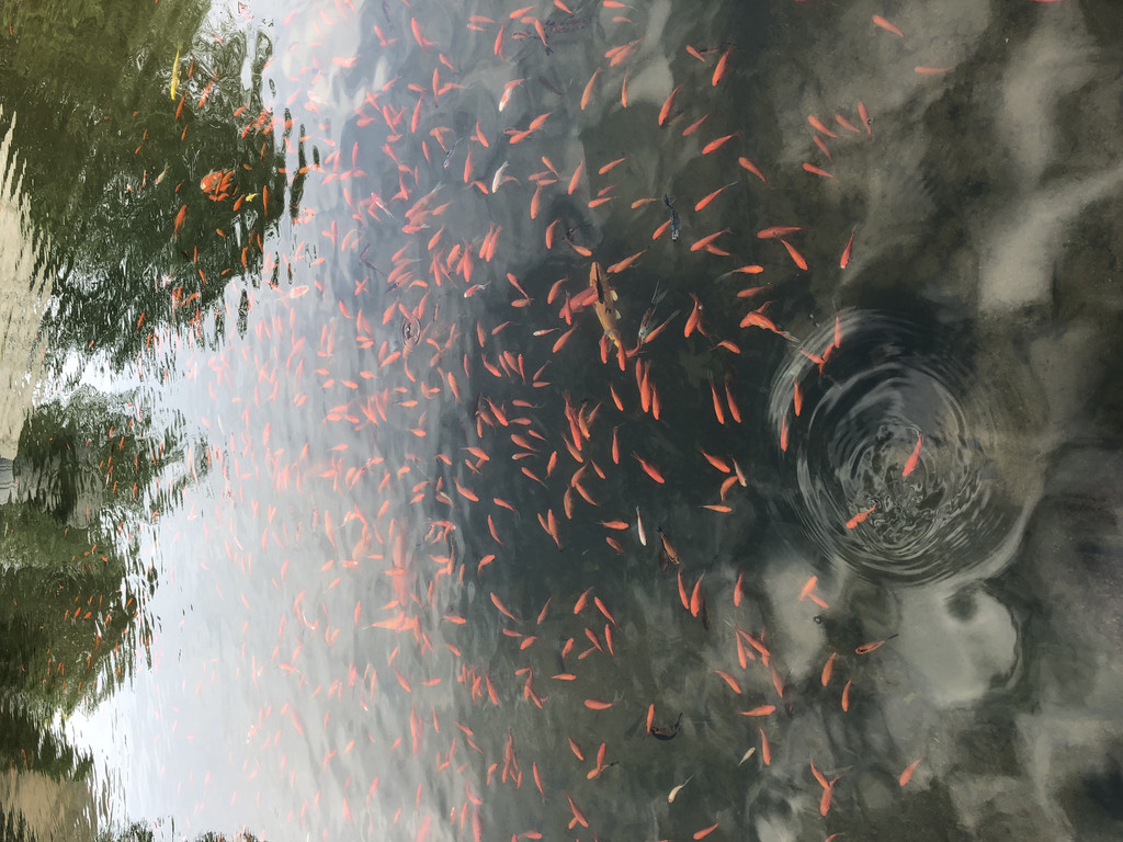 水塘里的游来游去的小鱼~还有好多老人来打山泉水