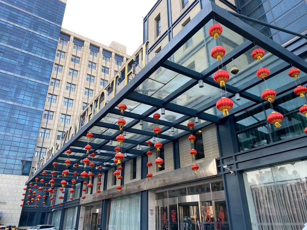 酒店在青岛李沧区京口路86号,蓝海大饭店(青岛李沧君峰路地铁站店),我们选择火车出行,到青岛北站,去的时候坐地铁去的酒店,三号线3站,不到二十分钟就到了很方便,走的时候打车也就十来分钟,这个位置是真不错了。酒店的红灯笼一挂特别应景,很快就要过年啦。