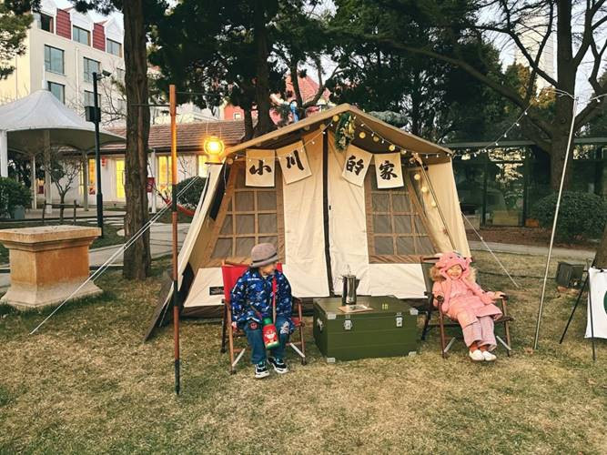 青岛太平角公园,公园里有几个小帐篷。现代人真的太会享受了,我看很多人都是带着帐篷出来玩。重点,帐篷也特别高级,很日式的feel。不过,这个帐篷不是游客的,是展览设置的。