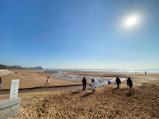 石老人海水浴场是这里很有名的渔场之一,大冬天的,来海边的人确实少。