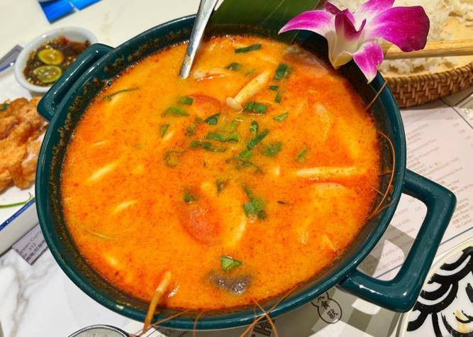 因为疫情原因,两年没去泰国旅行过了。这次在青岛专门去了万象城,我们去吃了泰式餐厅,里面有泰式碳烤猪颈肉,冬阴功汤,芒果糯米饭等等。难得的是,这家店里的泰餐确实比较正宗,吃起来很是过瘾。