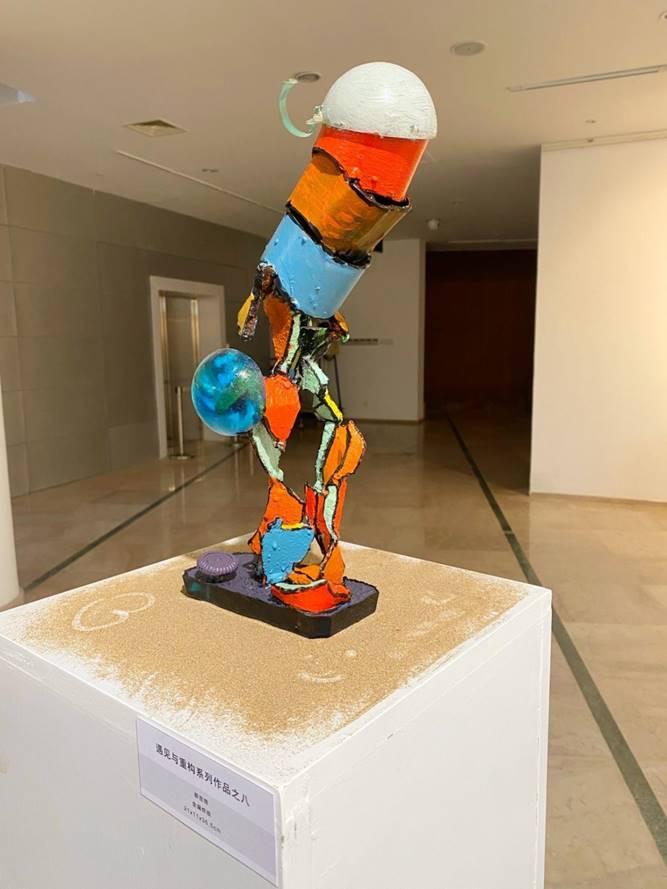 本来以为都是各种金属的雕塑呢,积蓄走就发现大不一样。比如这个遇见与重构系列雕塑,用的是特别丰富的色彩和材质。像这个大大的望远镜,看着简直美极了。