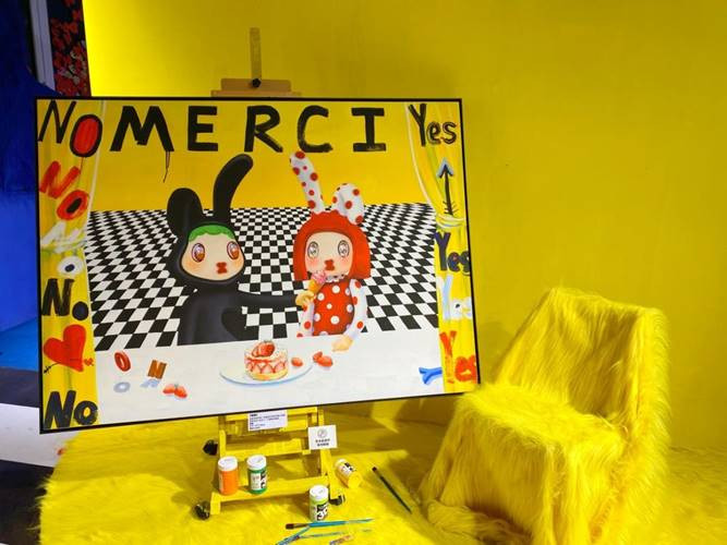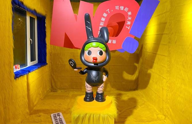 奈美兔的展览简直太好了,看看这里的颜色,几乎都是在用特别明艳的色块。什么黄色,红色,绿色,黑色各种各样,而这些颜色聚集在一起,所形成的又成了特别卡哇伊的图案。