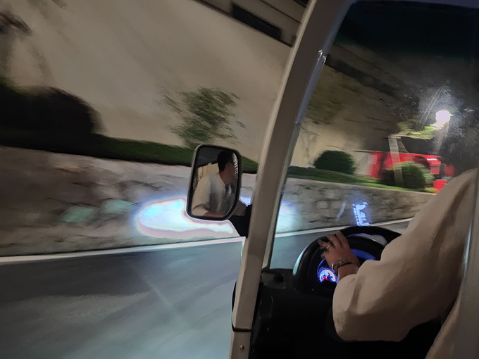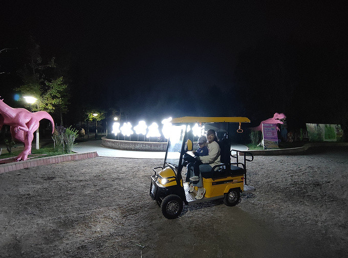 一直到夜幕降临,看到了景区的巡逻车,搭车到了景区门口,又租了一辆电瓶车,绕着景区转了一圈,发现了动物园门口的小滑。