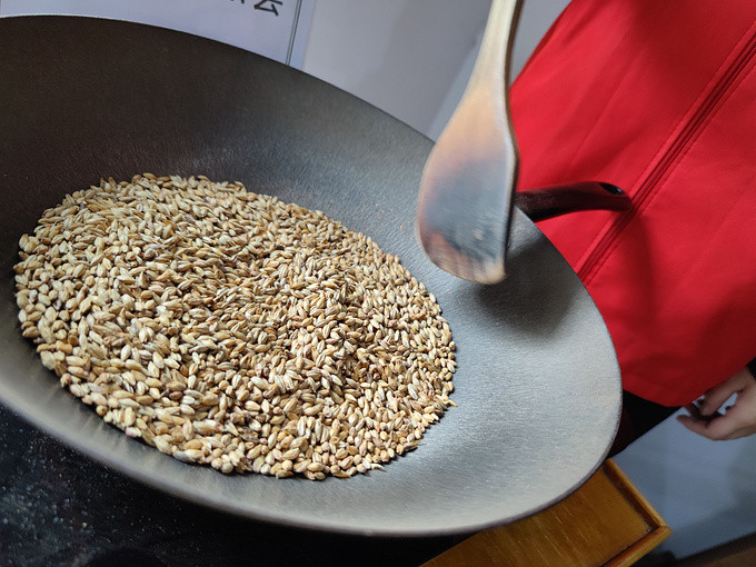 沿着游览的。路线继续行走,有专门的服务人员在途中炒麦芽,可以很清晰的闻到麦芽的香气一阵一阵的飘来,用“香气四溢”来形容,毫不为过。