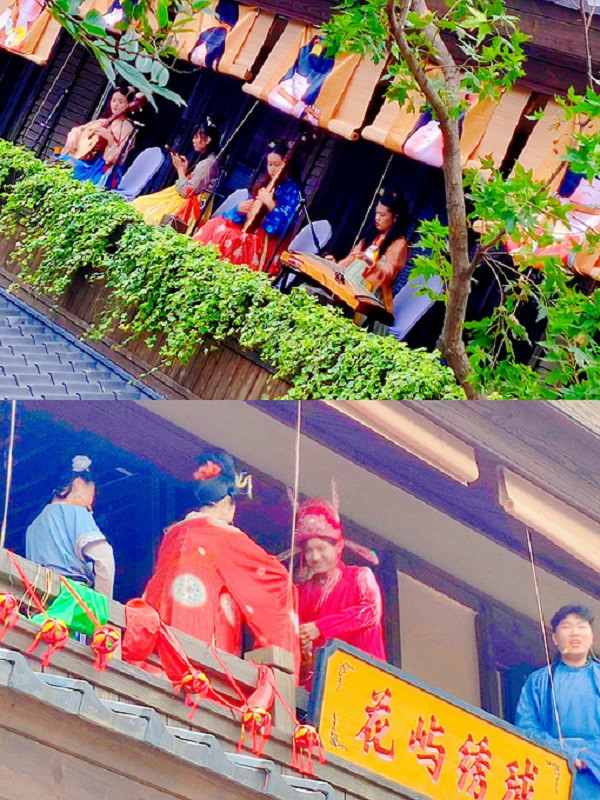 再等出了民宿,恰逢遇到了在2楼上演奏的乐师们。一首首耳熟能详的古风小曲让人如沐春风。
