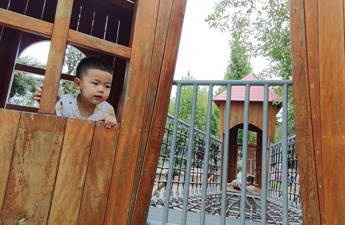 游戏区的木头滑梯、滚筒滑梯,木栈道的六米大象滑梯,都没有人随便玩。