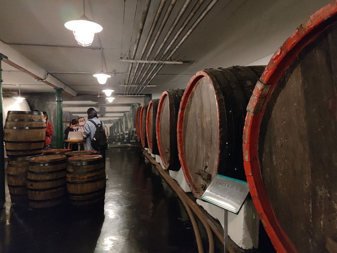 穿过啤酒存储的橡木桶区域,就抵达了我们品尝青岛啤酒的小型酒吧。