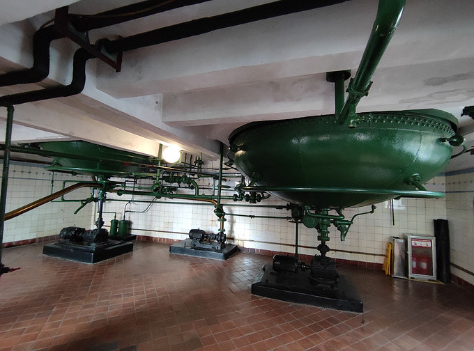 沿着楼梯上2楼是德国人的糖化车间,两个硕大的紫铜设备是国家一级文物。