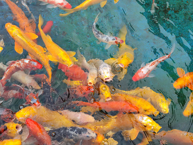 曲老师抱着麦兜同学在广场上来回溜达,发现了漂亮的喷泉和喷泉里,一尾尾硕大的闪着鳞光的锦鲤。