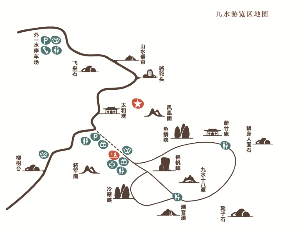 【九水游览区】源自巨峰北侧海拔1100米的天乙泉,是崂山海拔最高的泉眼。“五步一换景,十步一重天”,随处可见的象形山石惟妙惟肖、栩栩如生,清澈的流水千回百转,浪花飞雪,潭水透玉,变化无穷;路线:观崂停车场——木栈道——内三水——无极潭——冷翠峡——七水垂帘——观瀑亭——潮音瀑——蔚竹观,主要景点“九水十八潭”以及各种象形石大多集中在这条线路上。