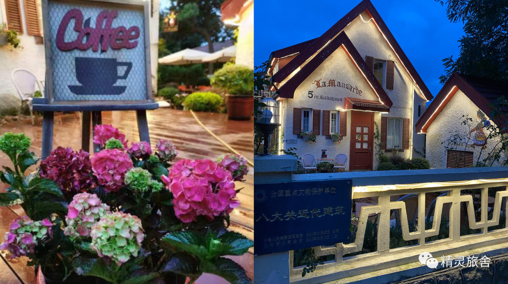 · La Mansarde 五号老洋房->咖啡:一家开在湛山路老洋房里的咖啡馆,店家在原建筑的小花园里种了很多绣球花,清幽舒适的环境,无论是在室内还是室外,点一杯咖啡翻开一本书就能打发一个下午的时光。