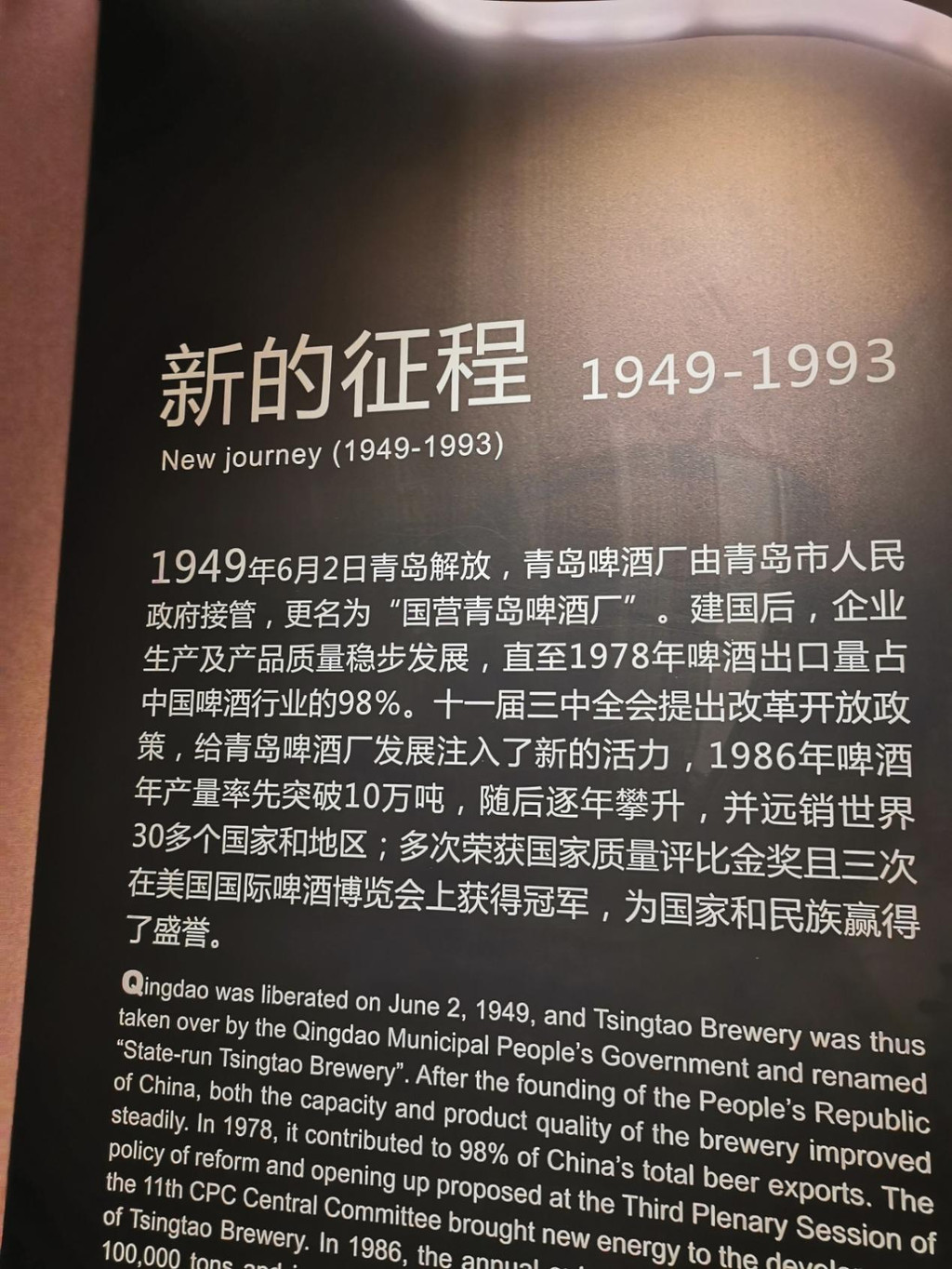 到了青岛啤酒博物馆。在这里看到了很多文字介绍。在此之前,不过是喝点青岛啤酒,并不知道这么多的历史。这一次知道了青岛啤酒的经营历程之后,对这个品牌也是油然起敬。如今的青啤不光是成为了国人的啤酒,甚至已经远销国外了。