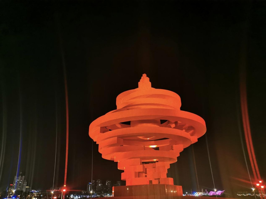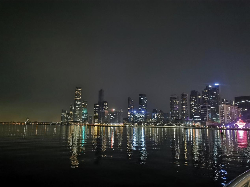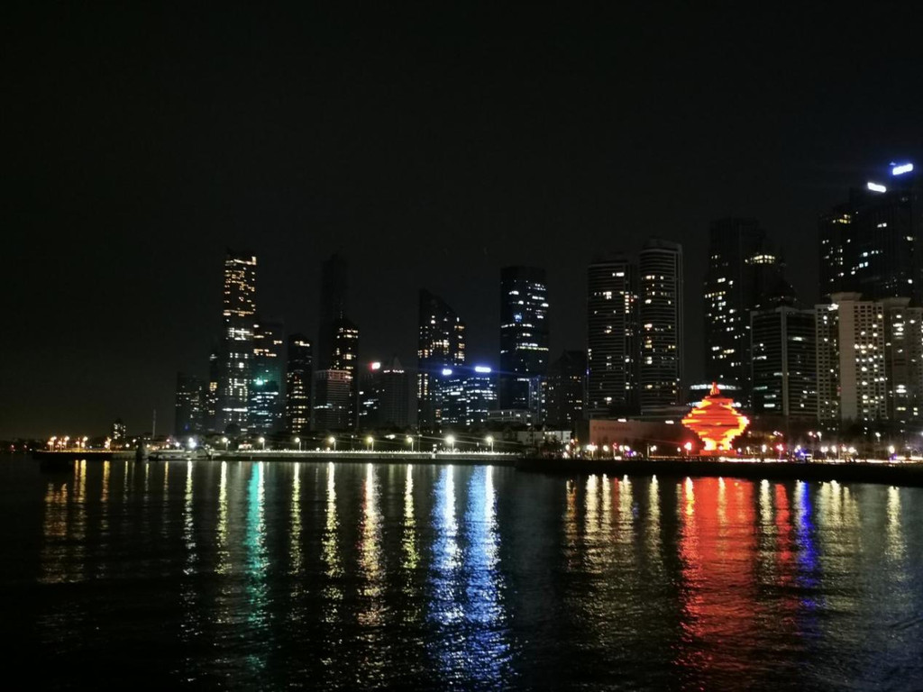 之后我们就回酒店休息了一阵儿。这一带的酒店特别多。我们入住的希尔顿大酒店,感觉还不错。在酒店里面大概休息了两个小时吧。我们又出来了,这一次的目的地是五四广场。五四广场是青岛的地标性建筑,这里的夜景特别丰富。到处都是很美的光线。如此美好的夜晚,确实会让人沉醉啊。