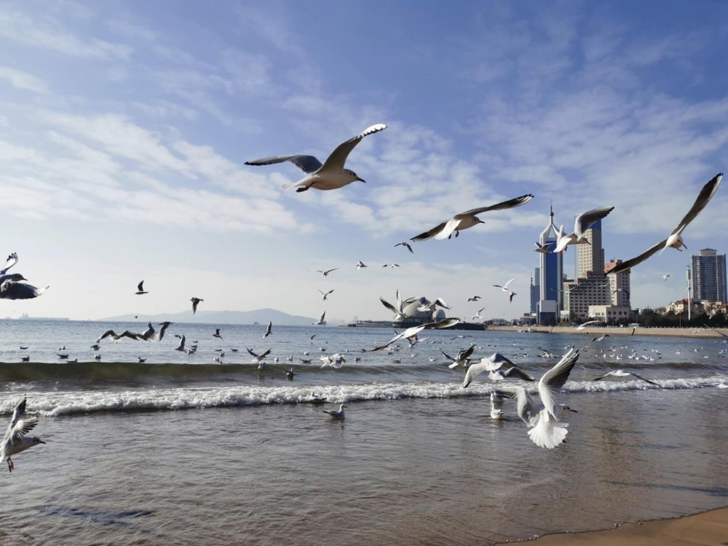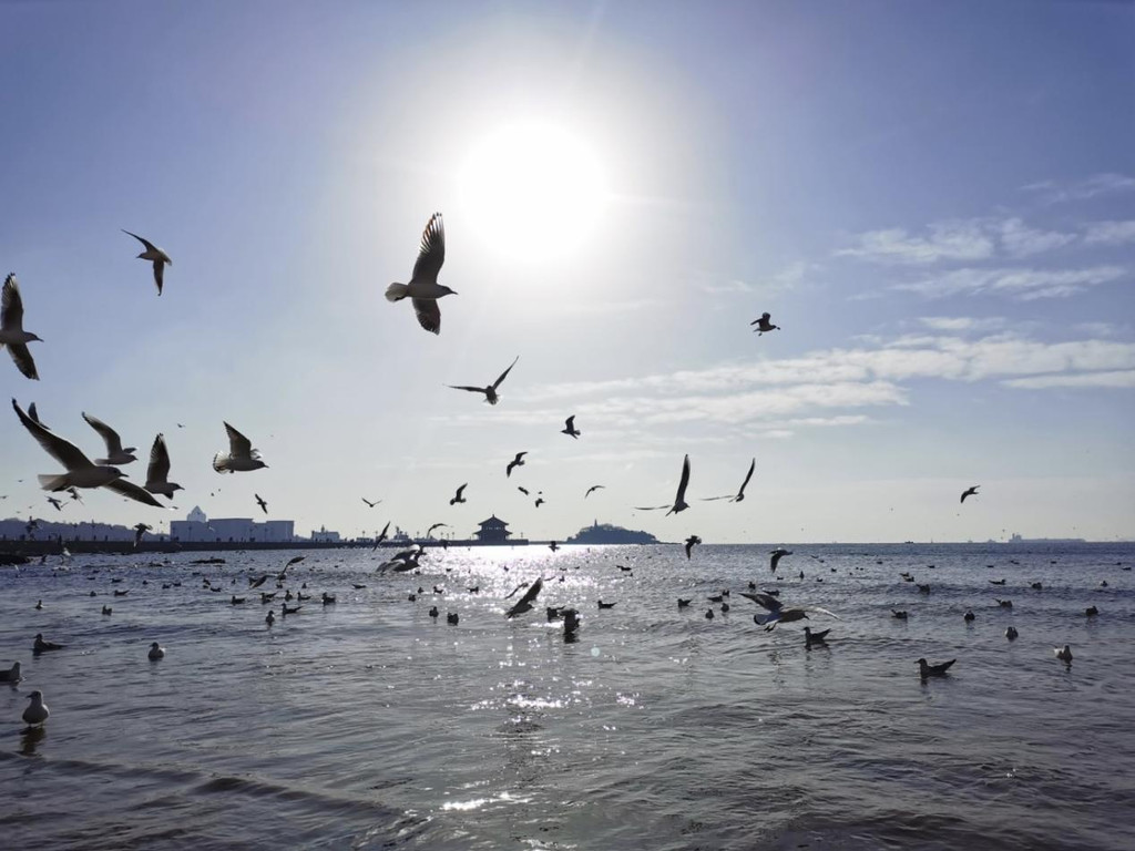 来之前我看了下攻略,大家都说10点左右喂海鸥比较好。我们是早上8点到达青岛的,取车之后直接去了栈桥。