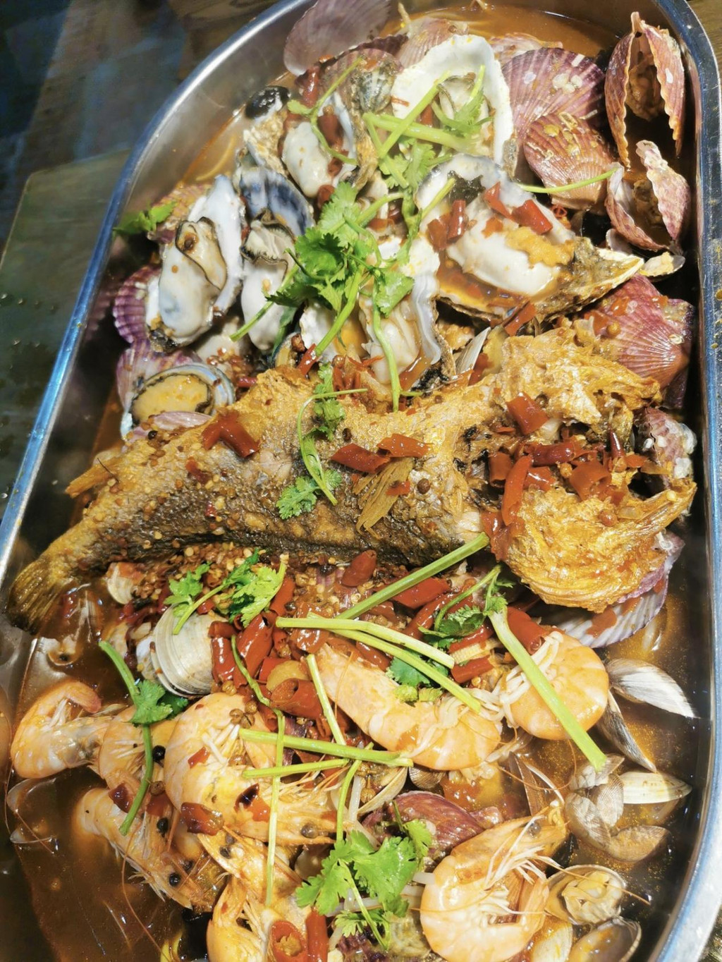 而且附近还有很多饭店。我们去了96号海蒸鲜。这家店里面的海鲜种类特别多,而且特别新鲜,是我很喜欢的海鲜。我们一共点了三道菜,花了不到200块钱,我觉得价格很合理了,毕竟海鲜分量也很足。而且,吃起来还有一种鲜甜的味道。