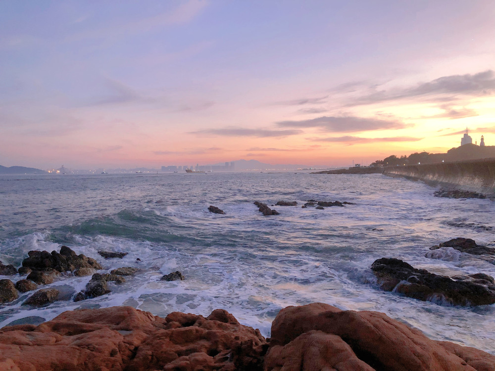 八大关出来之后直接步行到琴屿路,要掐点,看最美的日落海景,真的随手一拍都是大片,路上全部都是打卡拍照的小姐姐网红们。整条街都是唯美的感觉。