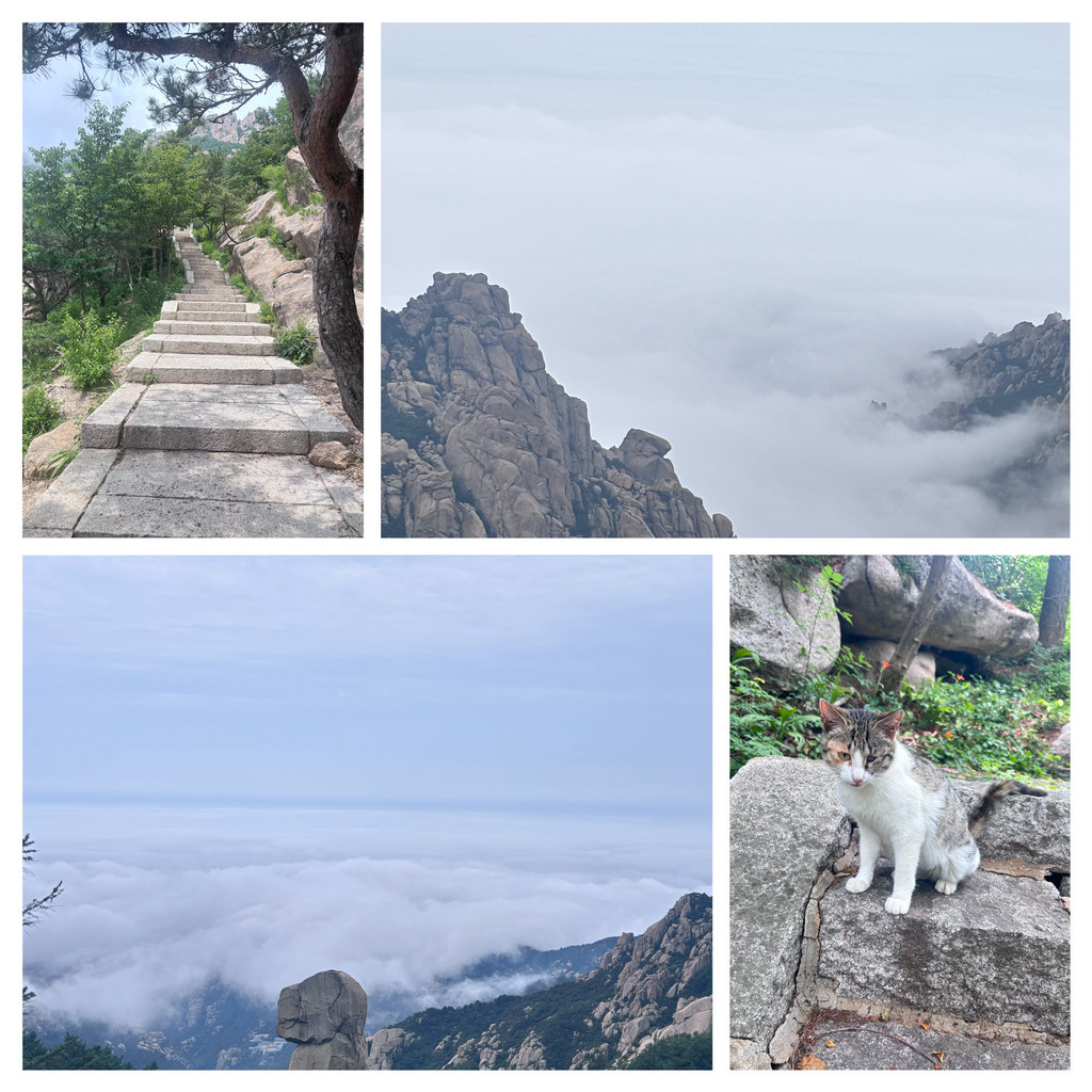 崂山的地貌和其他的山不同,由于冰山融化和风雨侵蚀,崂山有很多巨石,形成一座巨石山。多云的季节,如果能带点小雨,那绝对是观赏的最佳时间。爬到山腰时,山腰以下的群山就已经被云雾缭绕,如同仙境。不时有小野猫在身边小声叫着,或一路跟随。景区里能够观赏的景点并不多。但当你真正的走到了最顶端时,你会觉得一切都值得··· ···