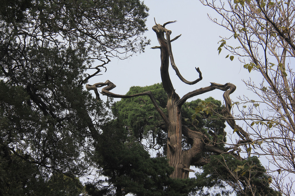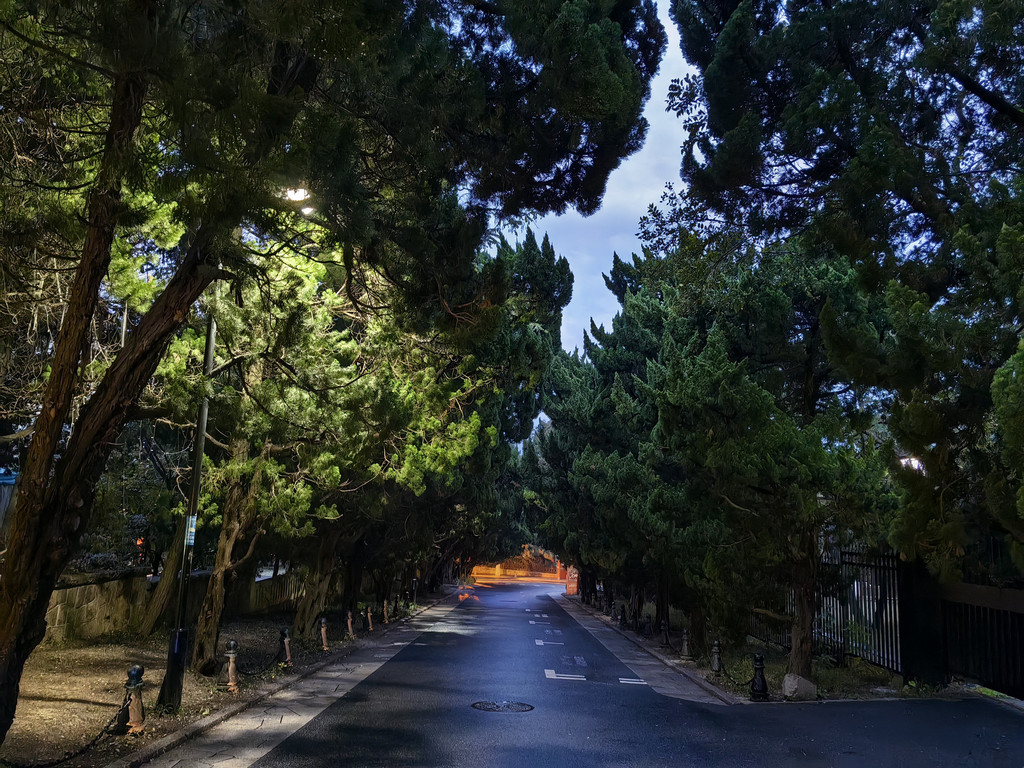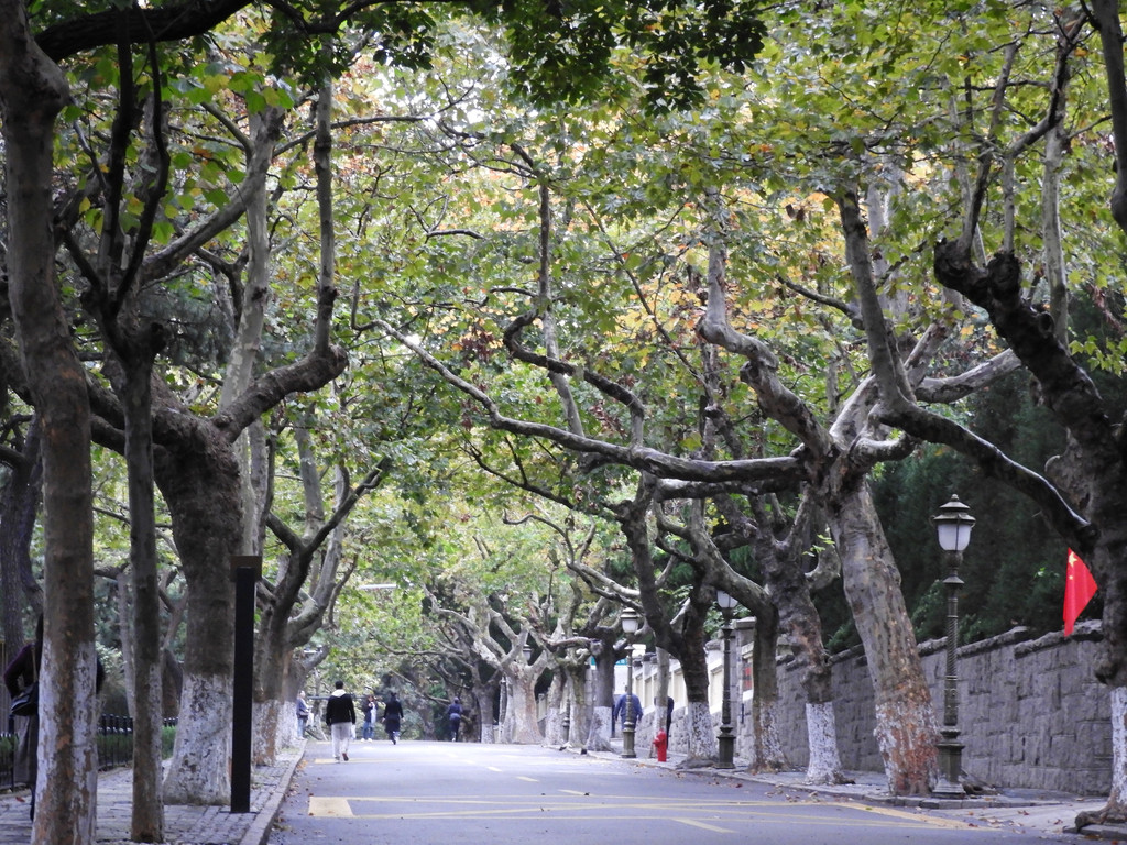阪路纵横,穿左侧高樾,豁然开朗处即八大关。