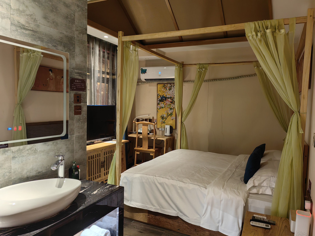 宾馆在其三者中心。与设想相仿,老街商业化,