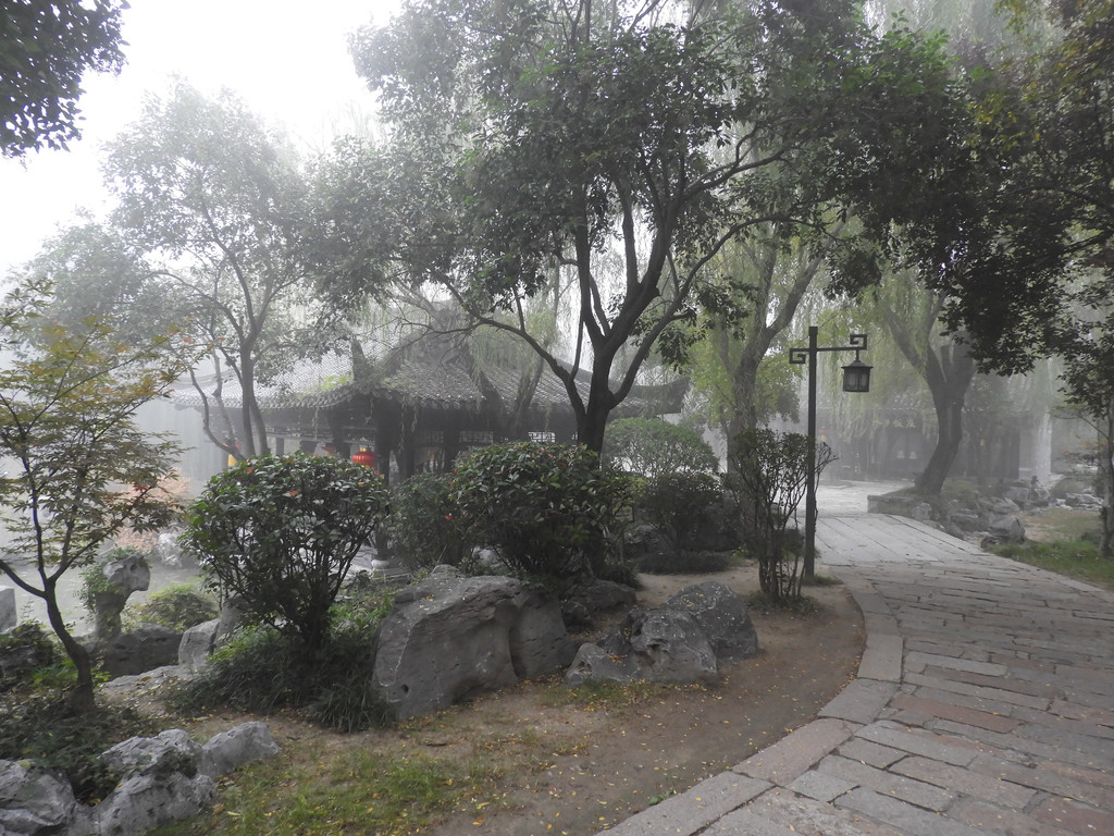 驾车狂奔潍坊十笏园,途中渐暗,车多如栉,目不睱及,左右梭刀乱斩。抵时已暗夜。宾馆