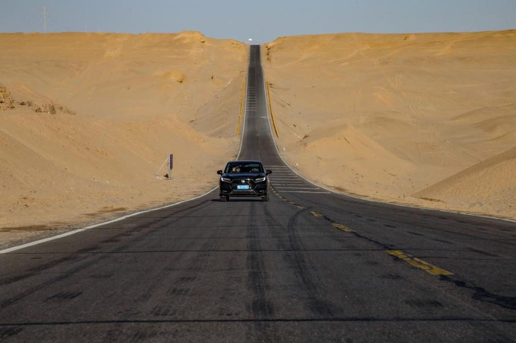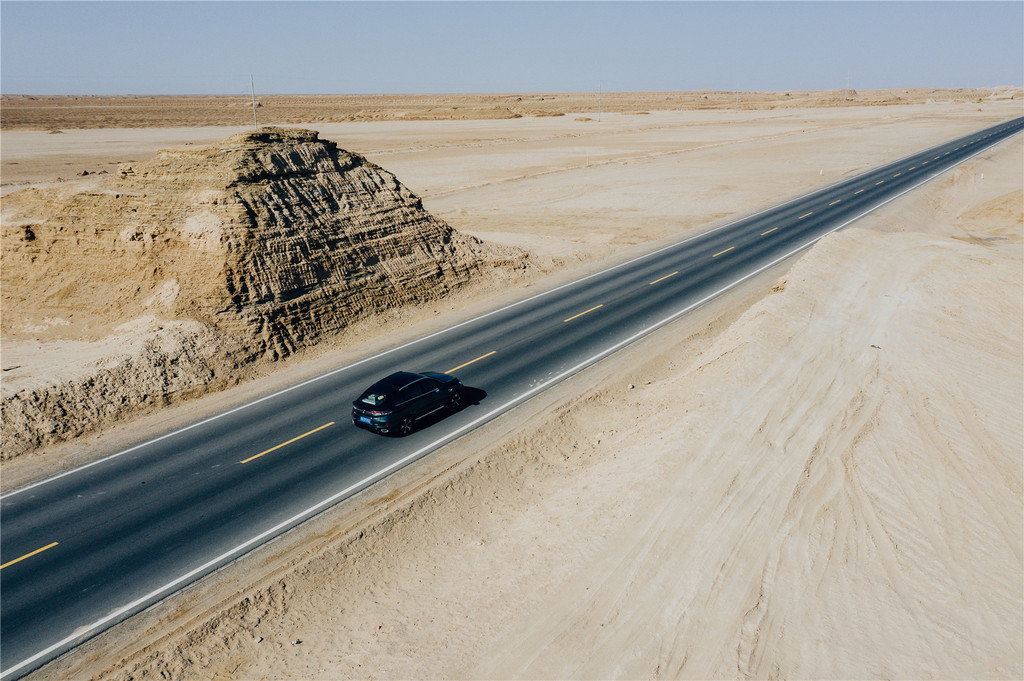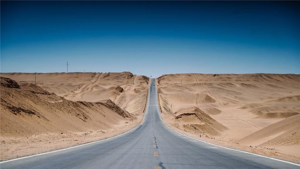 巨大的起伏角度与两旁绵延不绝的沙漠
