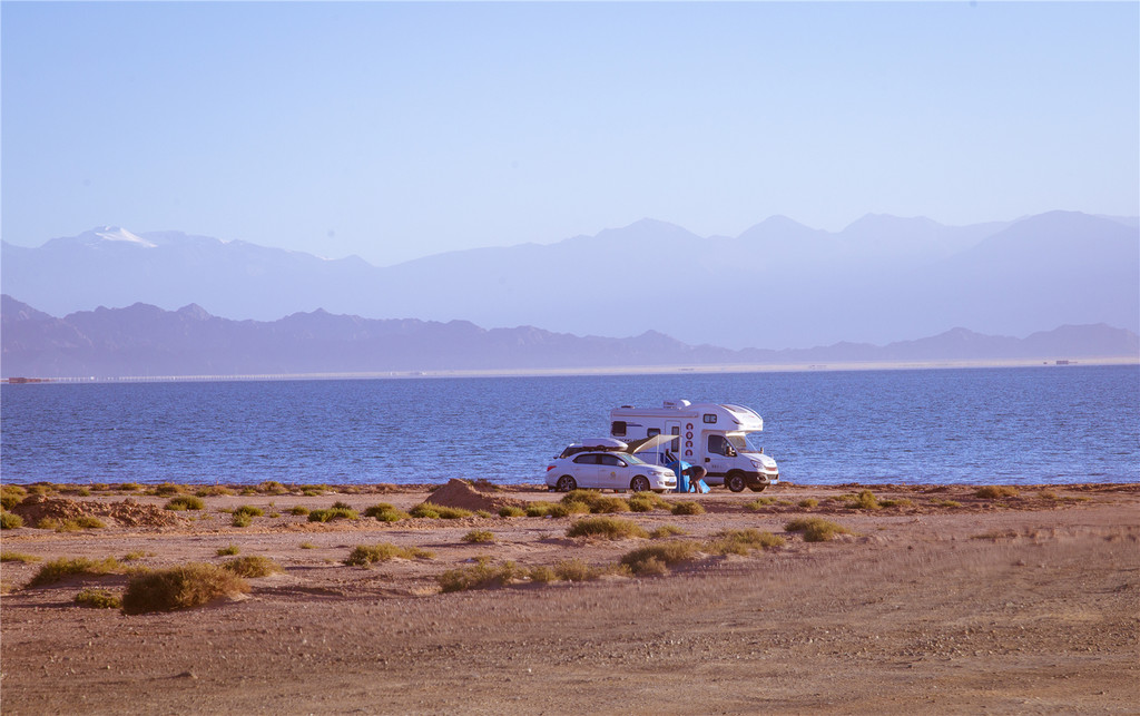 被小柴旦湖的湖水和远山应和